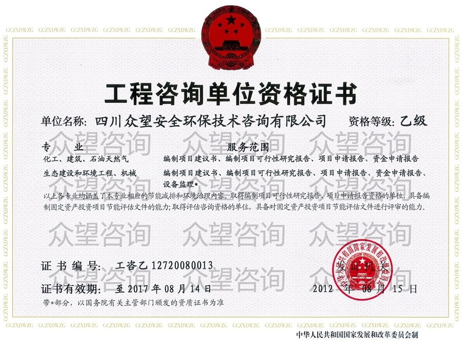 四川眾望安全環(huán)保技術(shù)咨詢(xún)有限公司 電 話:028-86258172/86258173/028-86258174/86258095 傳 真:028-86258093/86258552